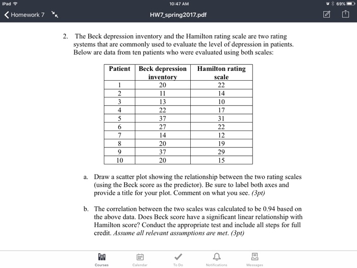 Solved The Beck Depression Inventory And The Hamilton Rating Chegg Com